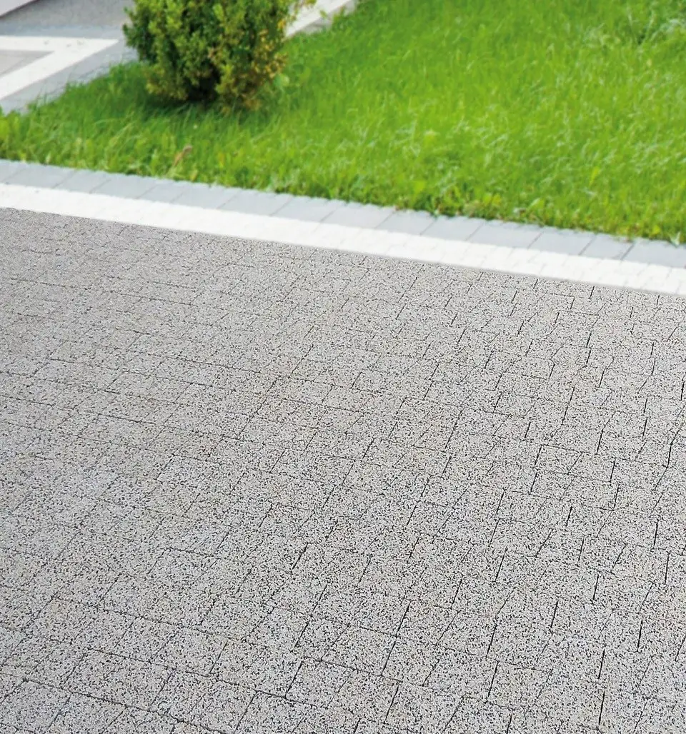 Dzięki zastosowaniu kruszyw naturalnych nadaje powierzchni elegancji. Stanowi idealne uzupełnienie kostek w jednolitych kolorach. Nadaje się zaokrągleń i ciągów pieszych.